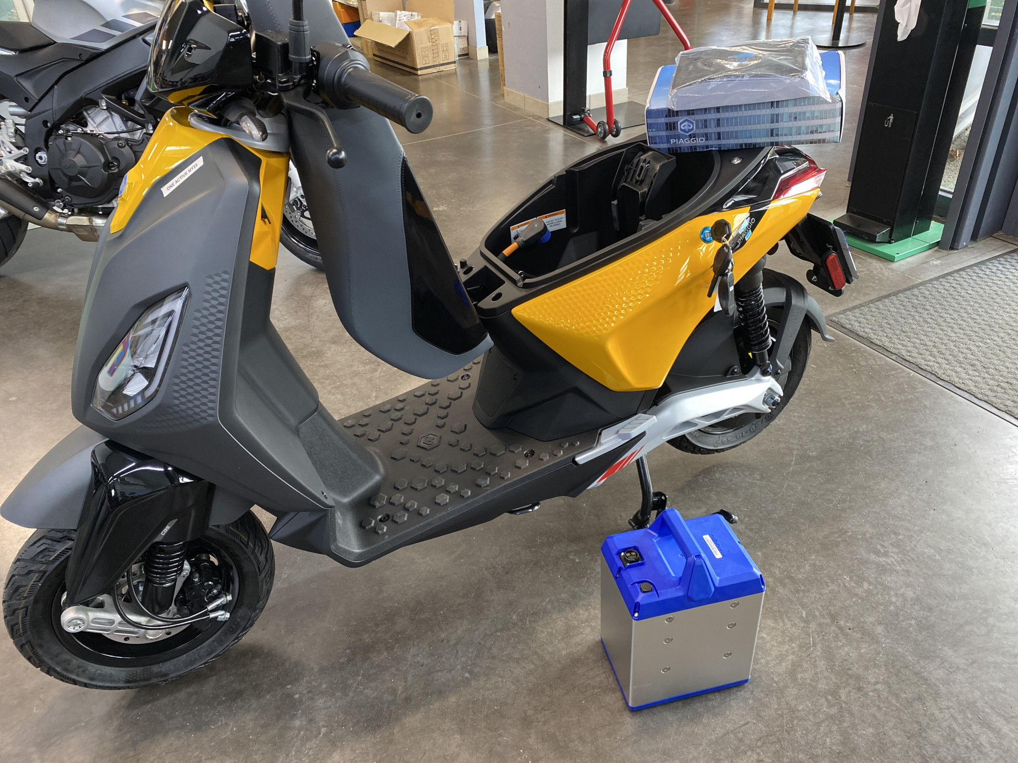 Piaggo one active - scooter de demonstration - etat neuf - equivalent 125 cc - accessible permis B + formation de 7h - le 100 % electrique par Piaggio - jusqu'à 85 kms d'autonomie - batterie amovible